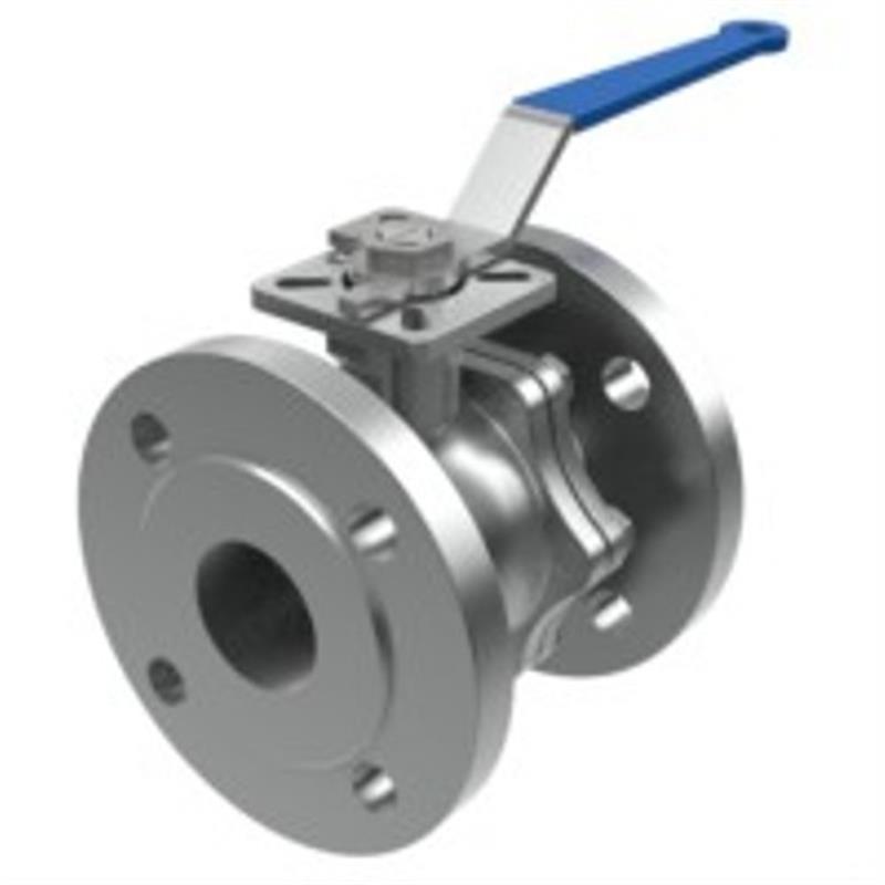 Flenskogelkraan, S216D, volle doorlaat, PN16, inbouwlengte vlgs DIN3202 F4, ISO5211 montageflens, RVS316 (1.4408/1.4401) huis/kogel/spindel, PTFE zittingen/afdichtingen, handbediend, DN100